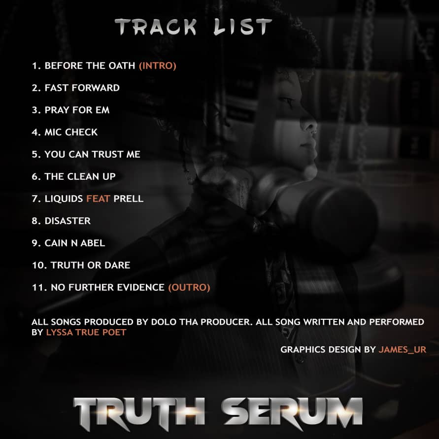 Lyssa True Poets sophomore album is filled with ominous strings, hard hitting drums and bass. From the clever fan-crazed intro, all the way to the raw, attitude-filled outro, it becomes obvious she is versatile in her craft, delivering comedic punch lines on “Mic Check” while simultaneously allowing the listener into a more personal space exposing life lessons and hard to swallow truths on records like “Fast Forward” “Pray For Em” and “Truth or Dare”.